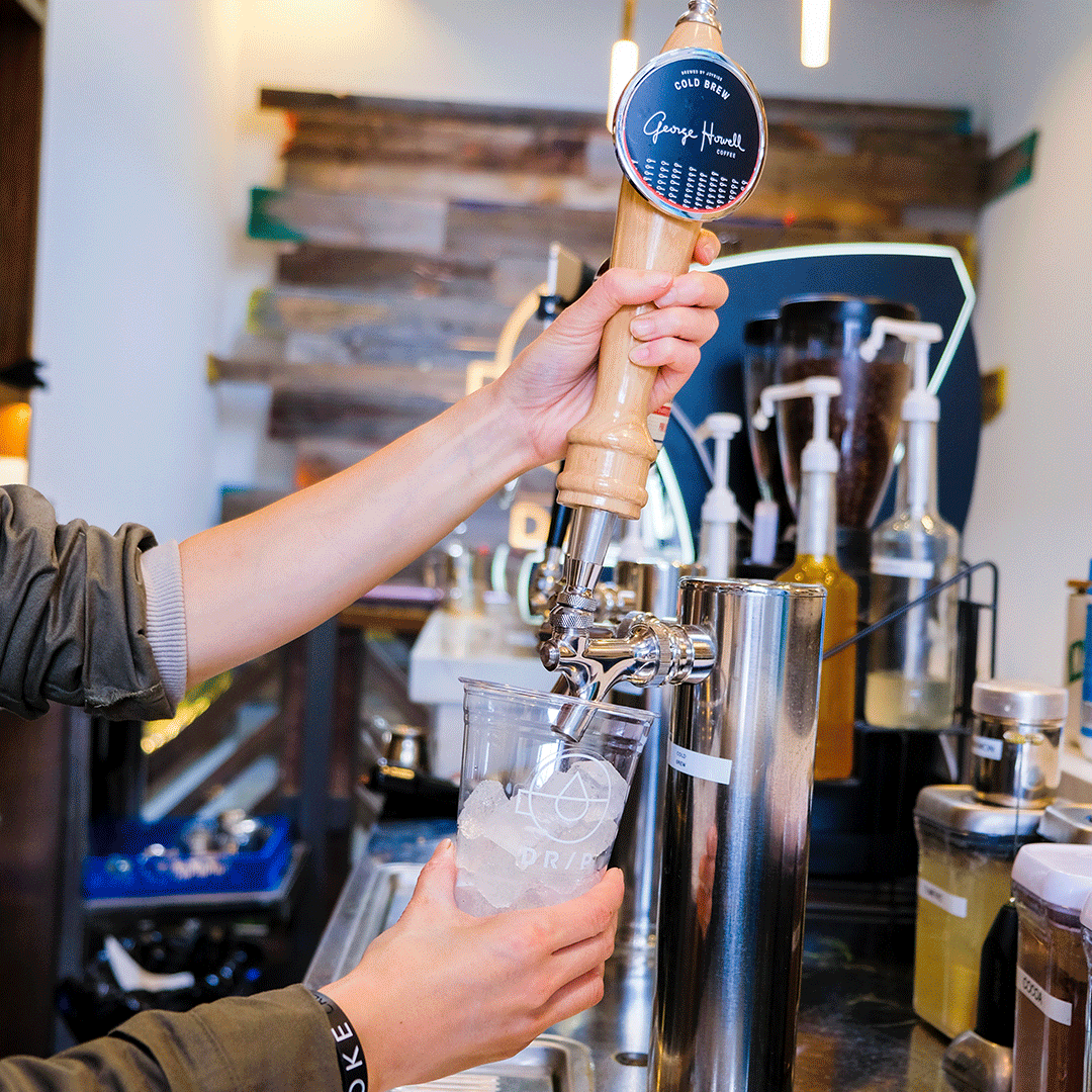 When it came time for B/SPOKE to open their first coffee shop, in their second studio location, Mark wanted to create an identity that could live seamlessly with the B/SPOKE brand. The unique thing about DR/P was the location— a street level coffee bar on top of a lively fitness studio. That means, many customers would arrive sweaty after their favorite cardio class. The final logo mark melts a coffee cup with “a drip” together in a seamless way.